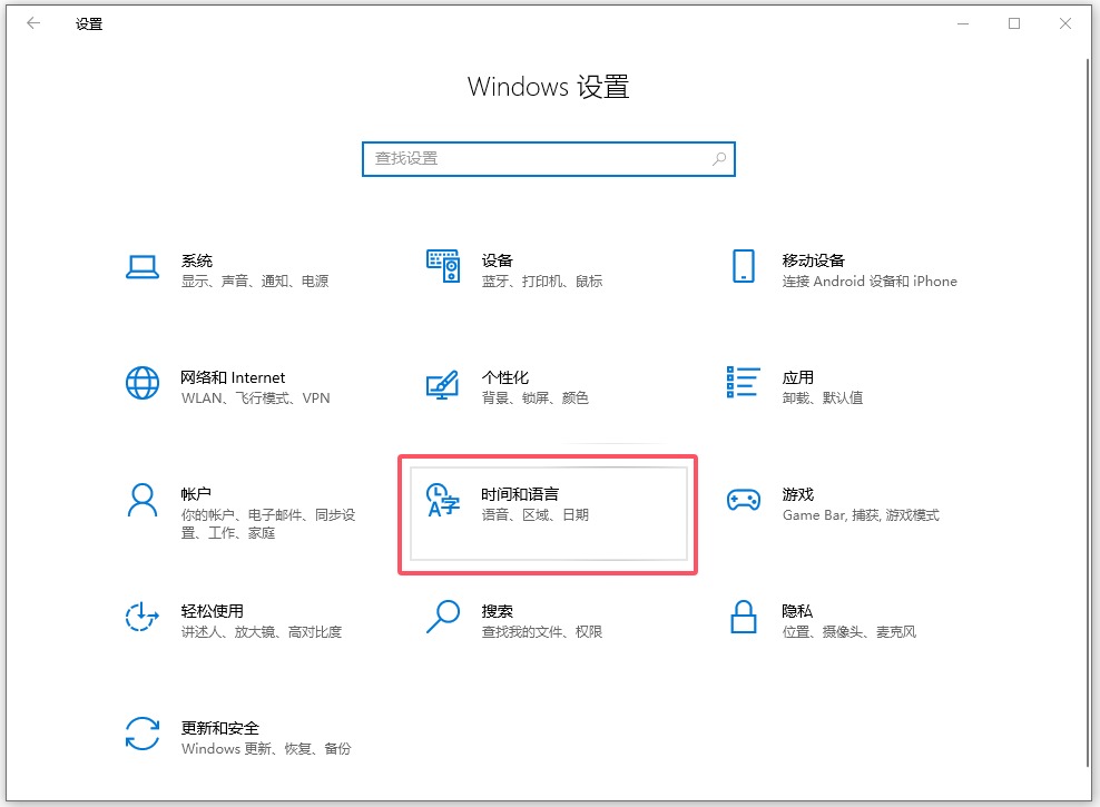 2、打開windows設(shè)置>>時(shí)間和語(yǔ)言